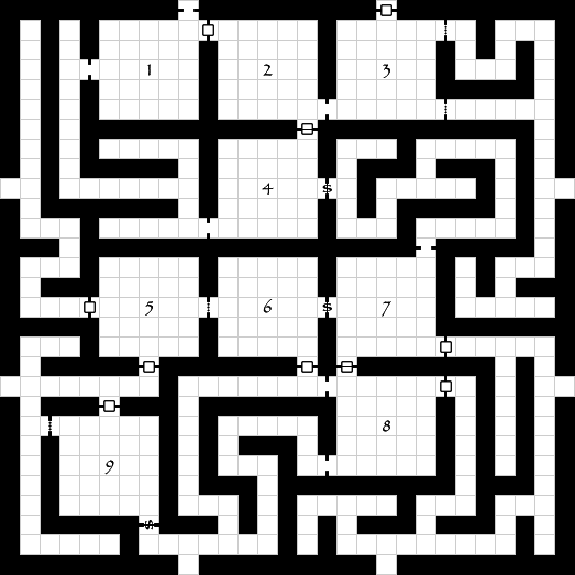 Here’s a classic dungeon map with hallways. As is clear, while it creates a labyrinthine design for the person running the game, players will just be annoyed by all the useless halls.